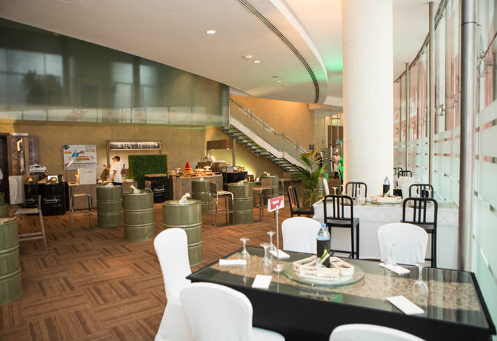 Frequently used for coffee breaks, networking and cocktail parties, the space can be used as a supporting location for events in the halls below, or as a private venue